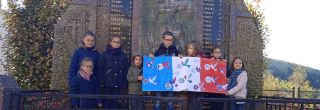 Les enfants ont lu quelques strophes du poème Liberté de Paul Eluard écrit pendant la guerre de 39-45 . Puis ils ont déposé une gerbe de fleurs accompagnée d’un panneau qu’ils avaient réalisé à l’école St Joseph.