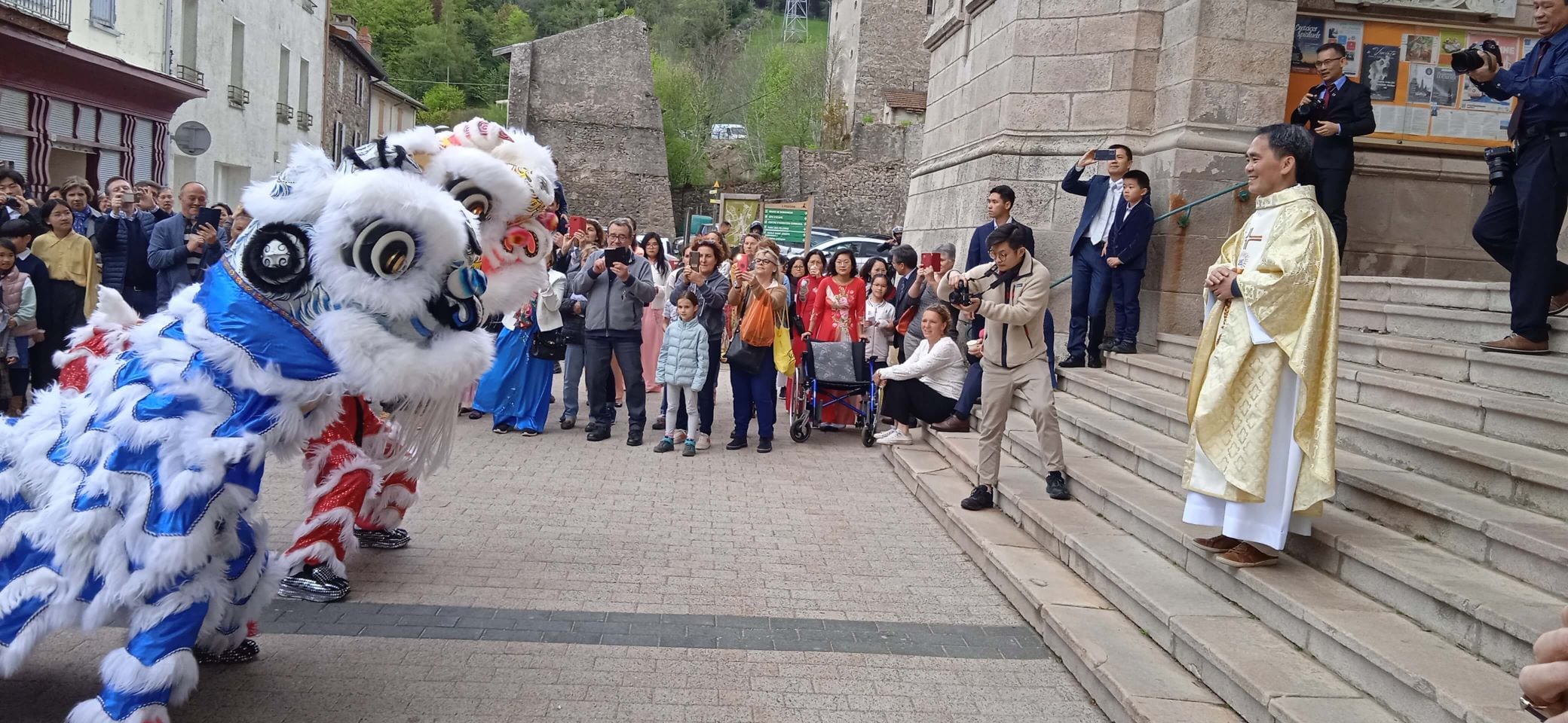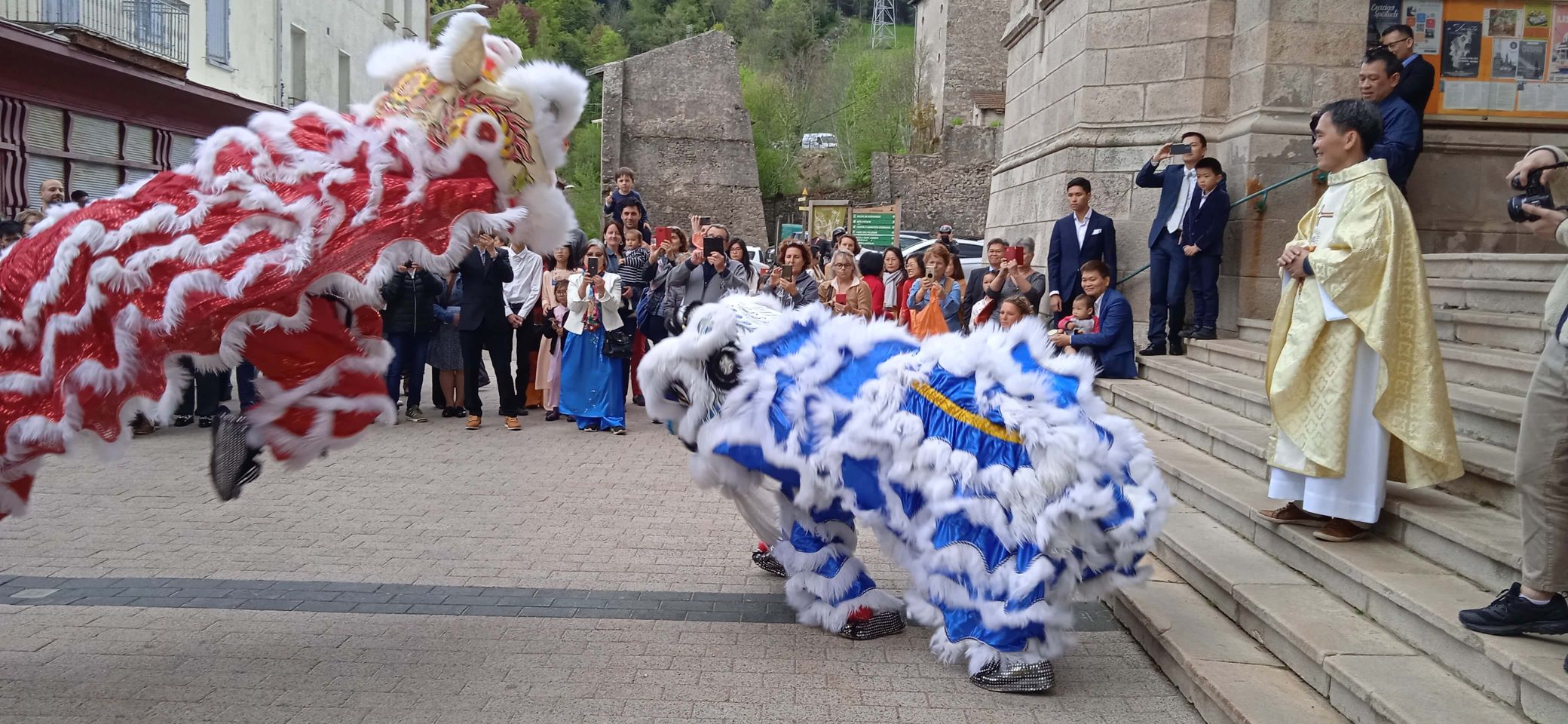 Et ce n’est pas tout. La cérémonie émouvante et solennelle terminée, la communauté vietnamienne avait concocté une surprise pour fêter le tout nouveau prêtre selon une coutume spectaculaire : la danse de la licorne.