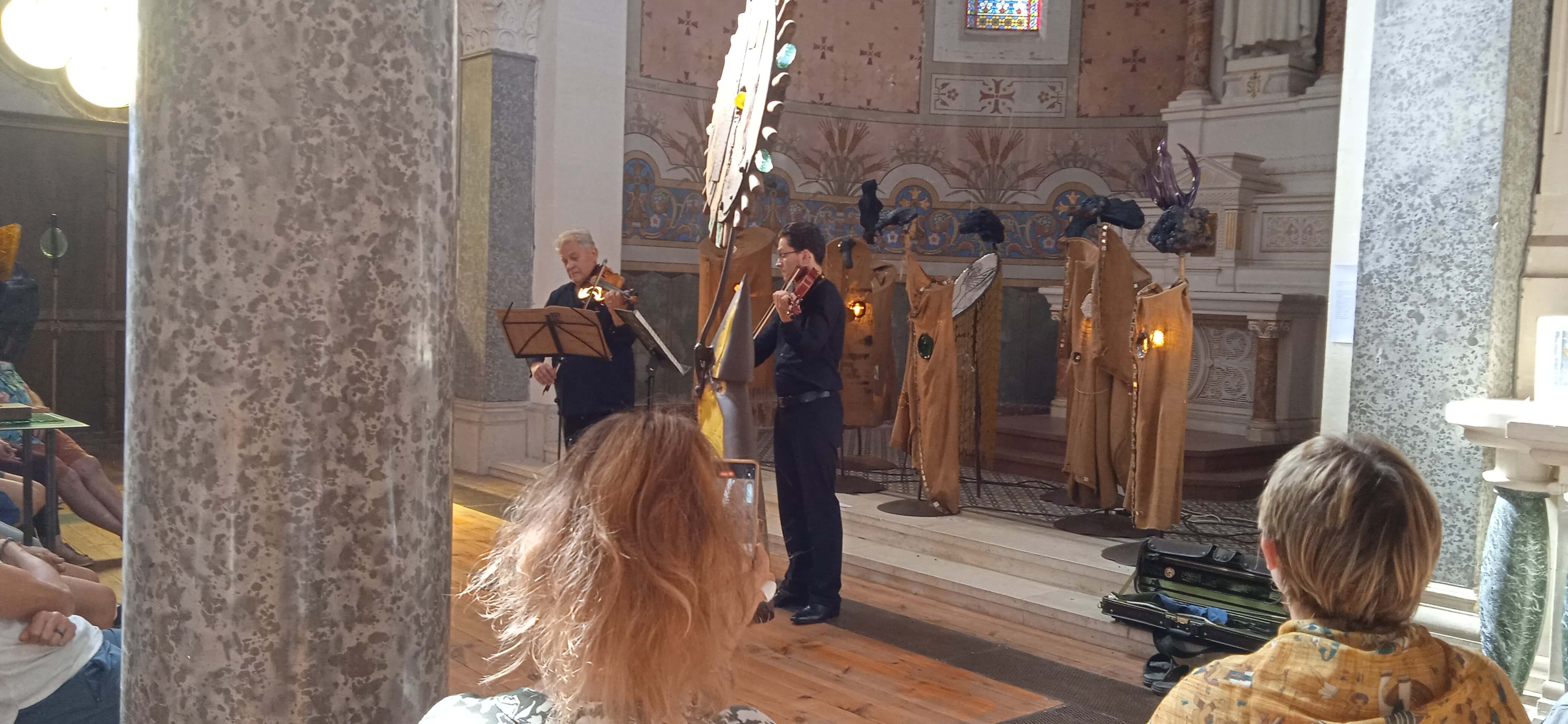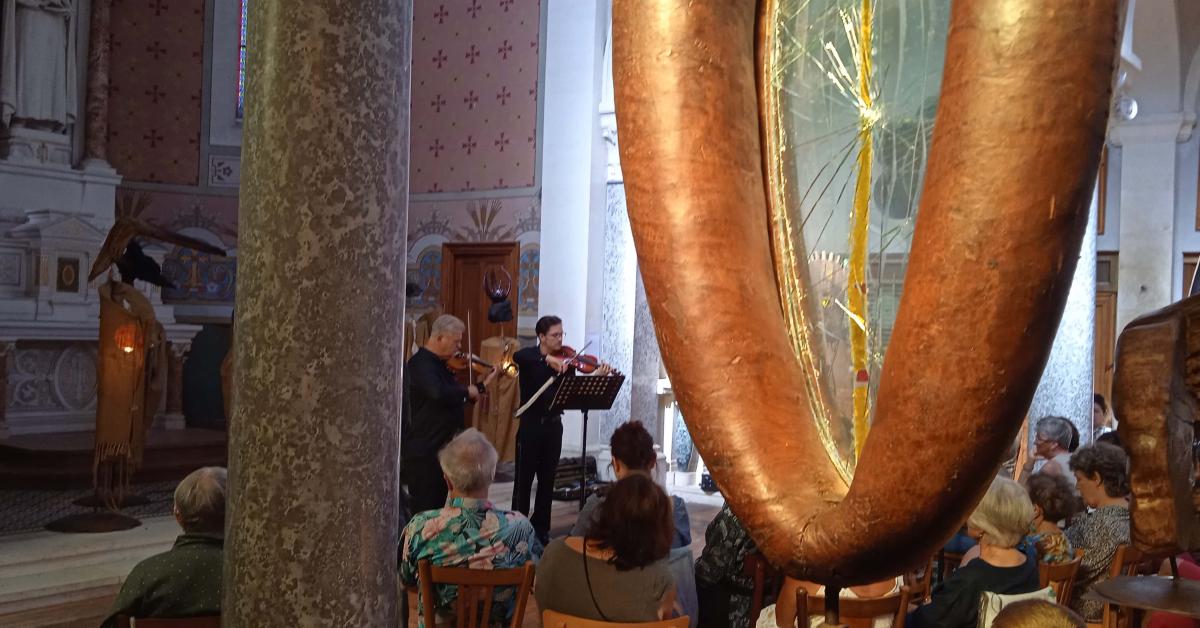 Une initiative exemplaire du Carrefour des arts qui a repris l’élan des Promenades musicales en faisant une nouvelle fois résonner les disciplines artistiques. La musique profite de la belle acoustique de la chapelle et les étonnantes sculptures de Bernard Froment se dressent au milieu des spectateurs et derrière les musiciens.