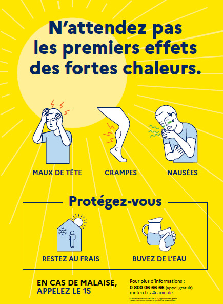 Il faut alors être vigilant, en particulier auprès des personnes agées, des personnes enceintes, des bébés et si vous prenez des médicaments. Il faut boire beaucoup de l’eau, même si l’on n’a pas soif et rester dans un endroit frais.