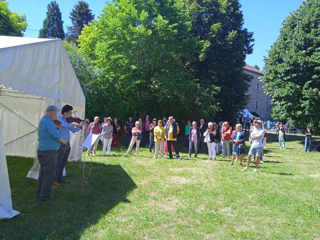 Une collation était offerte dans le jardin de la Maison St Régis, précédée par quelques mots du président de l’association, Julien Besset et des élus de la Région, du département de la CCVA et du Maire de Lalouvesc.
