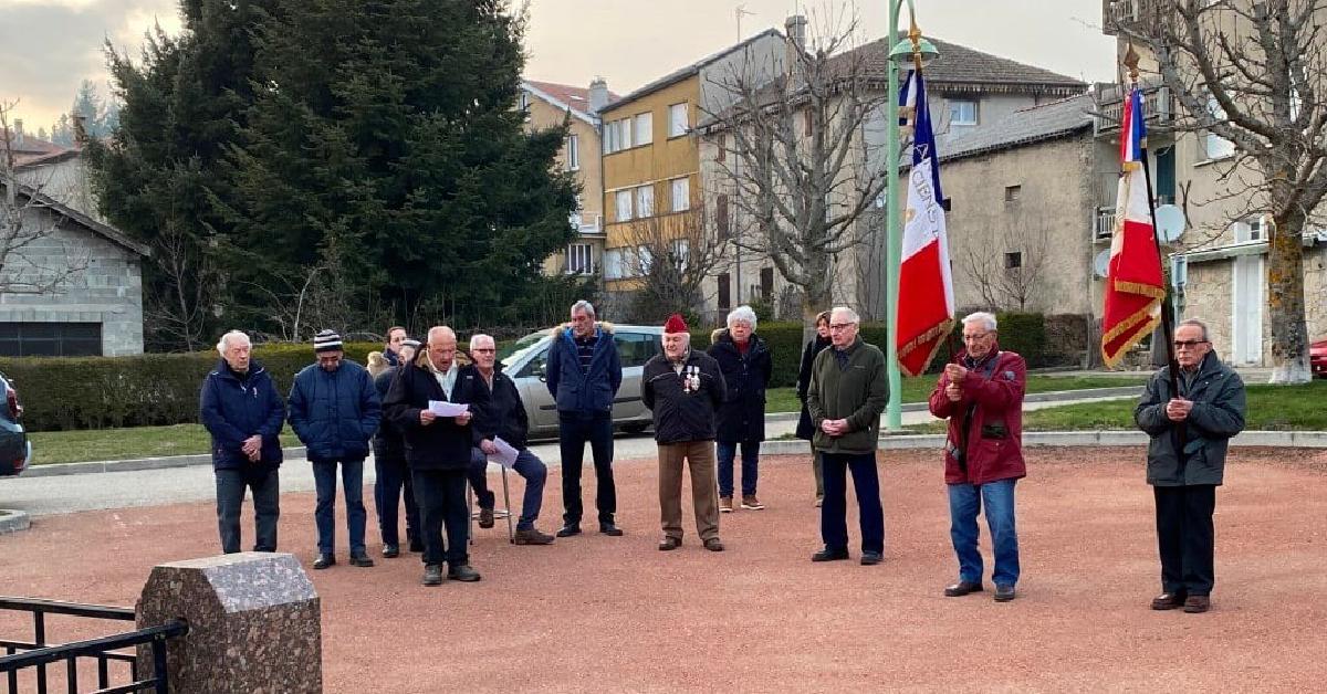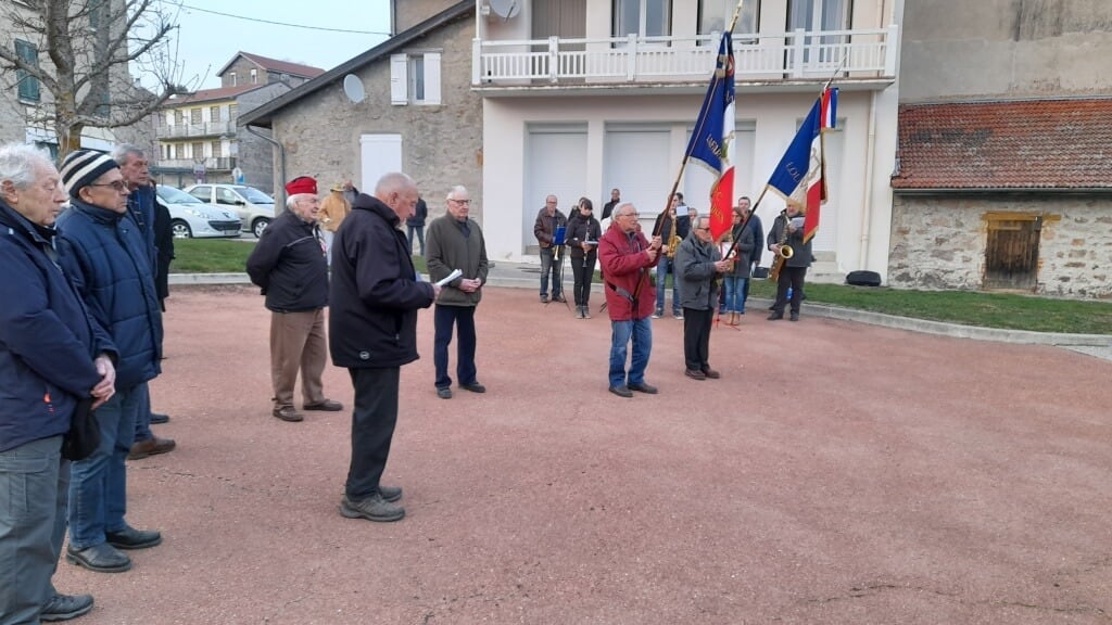Une cinquantaine de personnes étaient présentes pour cette commémoration devant le Monument aux morts de Lalouvesc en ce samedi soir accompagnées par la Lyre louvetonne.