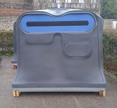 Non, ce n’est pas un nouveau clin d’œil post-Halloween du Comité des fêtes… les nouveaux bacs à ordure ont été entreposés sur la place du Lac en attendant d’être répartis sur les six points de récolte prévus :