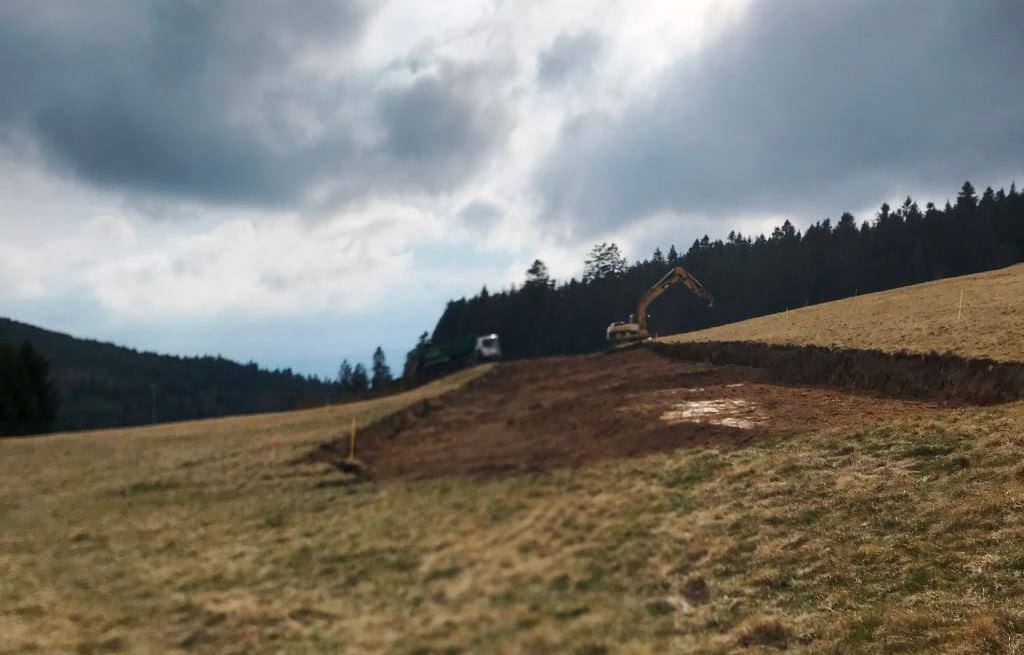 Le chantier vient de démarrer. Il durera cinq semaines pour la viabilisation du lotissement. La terre dégagée servira à niveler les plateformes du camping qui en ont bien besoin.