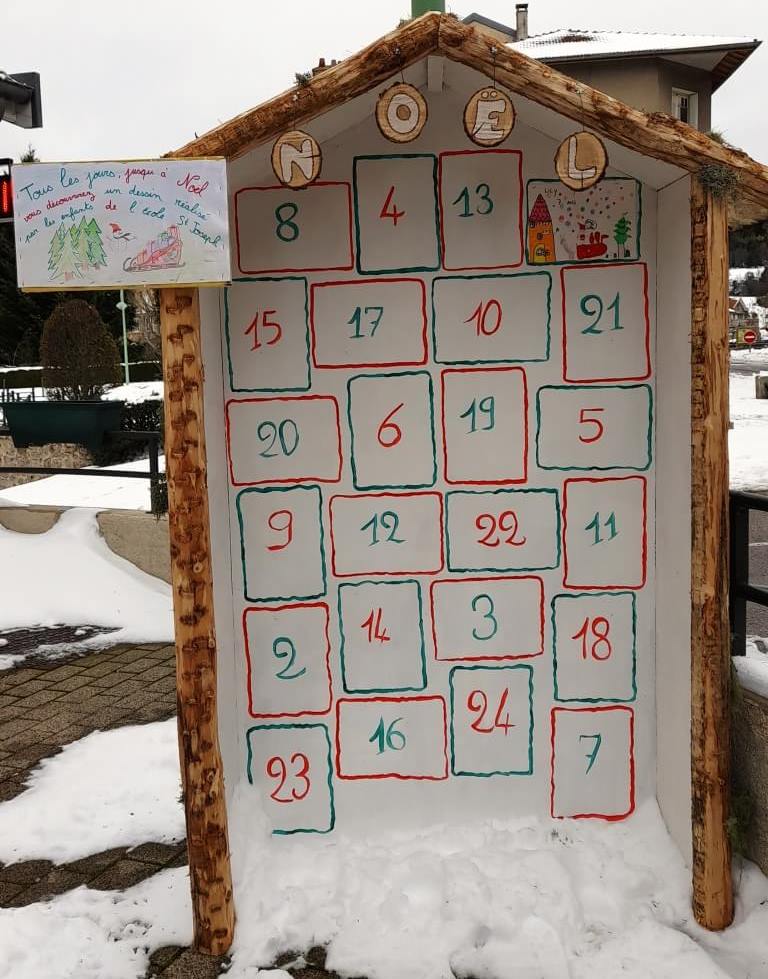 Et, nous sommes le premier décembre. Il était temps d’installer le calendrier de l’Avent préparé par les enfants de l’école St Joseph devant la mairie. Le premier dessin a été affiché. Il y en aura un chaque jour, dessiné par un enfant différent. Venez les admirer !