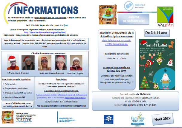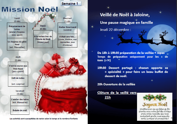 L’équipe d’animation a prévu plein de magie pour ces vacances et nous espérons vous voir nombreux à notre veillée du 22 décembre ouverte à tous de 19h30 à 21h.