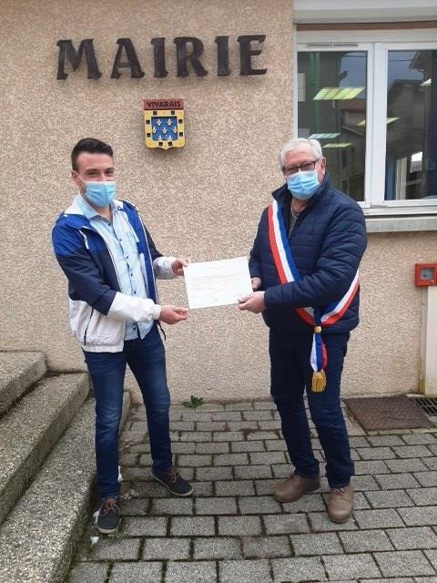 Monsieur le maire Jacques Burriez a donc pu remettre en main propre le diplôme de Licence de Géographie et Aménagement (Parcours Territoire - Environnement) à Kévin Astier, jeune habitant du village.