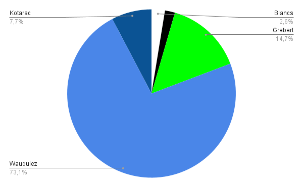 - WAUQUIEZ (LUD) 54.36 % des suffrages exprimés