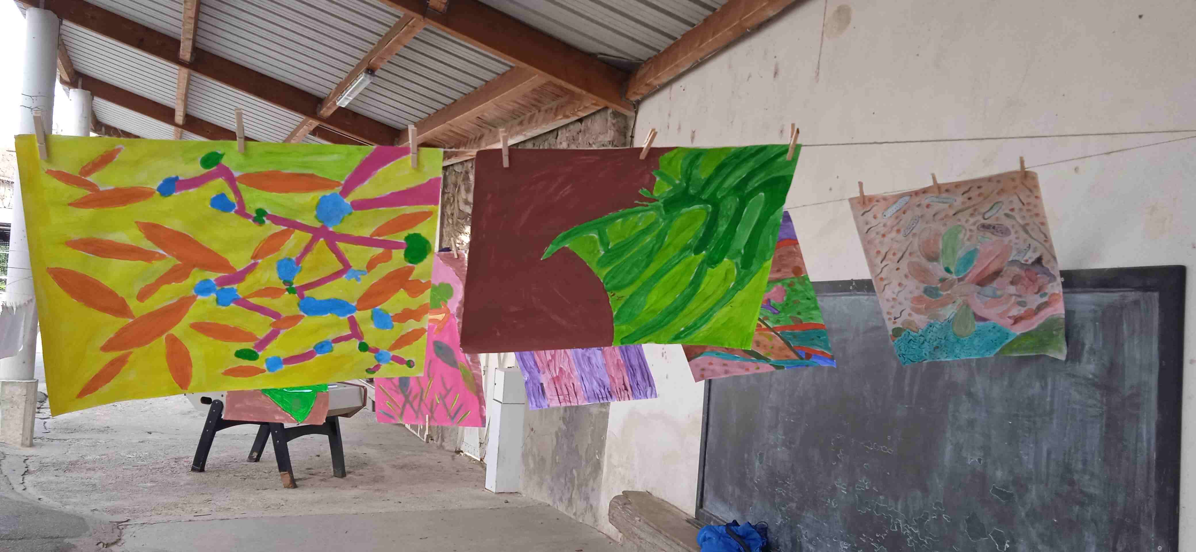 Des ateliers créatifs durant le mois de mars 2023 avec les élèves : prises de photos d’inspiration dans la nature et création en dessins et peintures d’une œuvre « abstraite » inspirée par les photos.