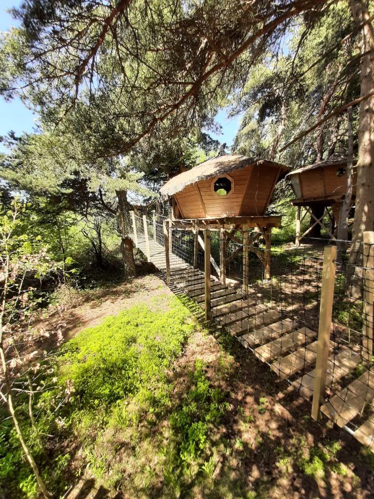 Vous pouvez profiter de quelques-uns de leurs refuges pittoresques en bois, construits sur pilotis, cachés dans les arbres. On y accède par une passerelle ou par une échelle. Chaque refuge est conçu pour deux personnes et dispose de sa terrasse. Certains sont proches et peuvent partager leurs terrasses. Charme, dépaysement et les petits déjeuners sont compris dans la location.