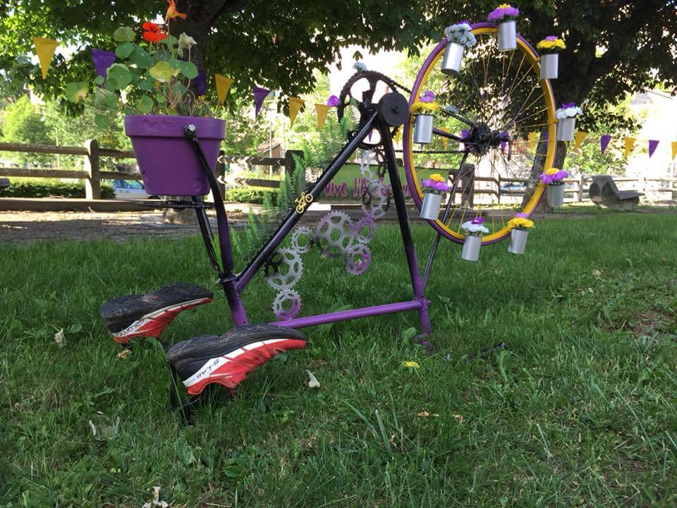 Chaque année un thème est choisi. Les bénévoles travaillent à la création de décorations autour de ce thème. Le jaune et violet sont à l’honneur. Les résidents de notre maison de retraite, les élèves de notre école s’impliquent eux aussi dans cette préparation. Le village se pare ainsi de décorations dédiées à ces méritants sportifs. Mais elles feront aussi l’admiration des visiteurs tout l’été. Le square dédié à l’exposition ne compte plus les photographes en recherche de souvenirs de leur passage à Lalouvesc…