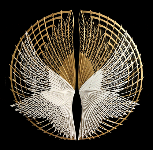 La première salle sur fond noir donnera le ton avec les époustouflantes sculptures de papier de Suhail Shaihk qui entreront en résonance avec les couleurs des batiks de Shasha Shaikh.