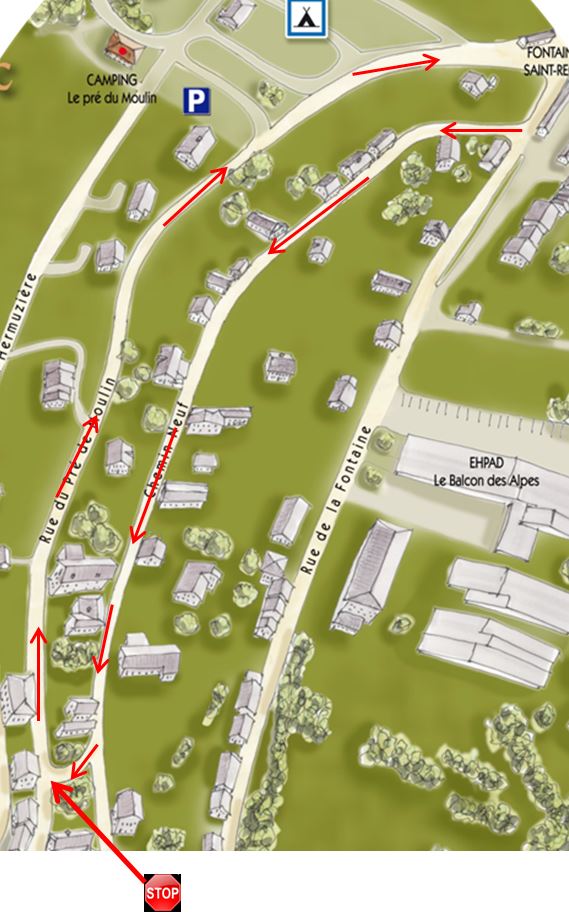 La circulation des piétons est dangereuse depuis l’Abri du pèlerin vers le centre du village. Il est indispensable de ralentir les véhicules qui entrent dans le village par le nord. La solution serait de mettre un stop sur la route qui vient de Saint Bonnet. Cette route étant une départementale, la décision revient à la DDT. Nous lui ferons une proposition en ce sens.