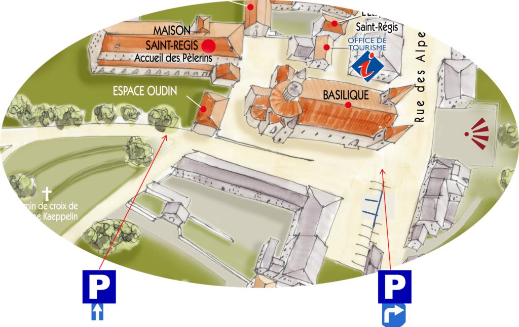 Le panneau indiquant le parking planté à gauche de la Basilique induit les automobilistes en erreur. La flèche semble indiquer qu’il faut tourner à gauche, c’est-à-dire vers l’école. Il faut donc inverser la flèche et, par sécurité, mettre un panneau supplémentaire à l’intersection suivante pour confirmer la direction à prendre.