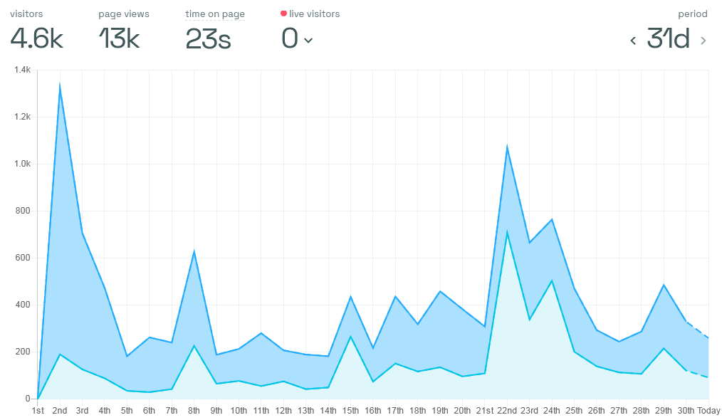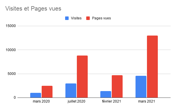 Le succès d’un site web se mesure principalement aux statistiques de fréquentation. Vous pouvez suivre les statistiques de fréquentation en direct (le système de statistique choisi est, lui aussi, sans traçage des internautes). Voici ci-dessous, quelques chiffres et graphiques que nous en avons tirés.