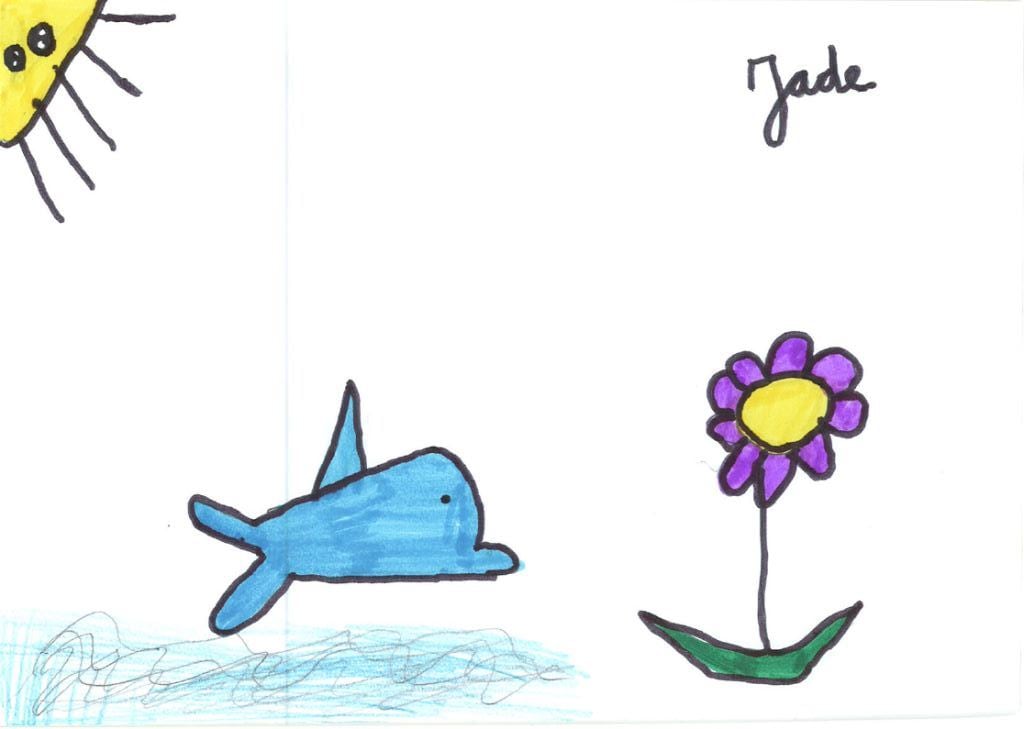 Les enfants plongent avec leurs fleurs, suivent les dauphins dans les profondeurs et respirent comme par magie grâce à la rose des océans.