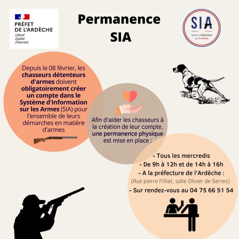 Depuis le 8 février, les chasseurs détenteurs d’armes doivent obligatoirement créer un compte dans le Système d’information sur les armes (SIA) pour l’ensemble de leurs démarches en matière d’armes, ou au plus tard le 30 juin 2023 en l’absence de nouvelles démarches, à l’adresse suivante :