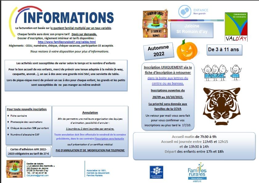 Pendant les vacances d’automne, les enfants de 3 à 11 ans sont invités à la découverte du Royaume, mais pas n’importe quel Royaume, celui de Jaloine. Lors de cette semaine, fortement inspirée du célèbre jeu télévisé, les enfants devront faire face à de nombreuses épreuves. Cohésion et esprit d’équipe seront les maîtres mots…