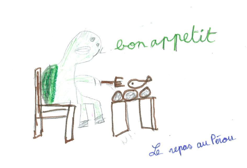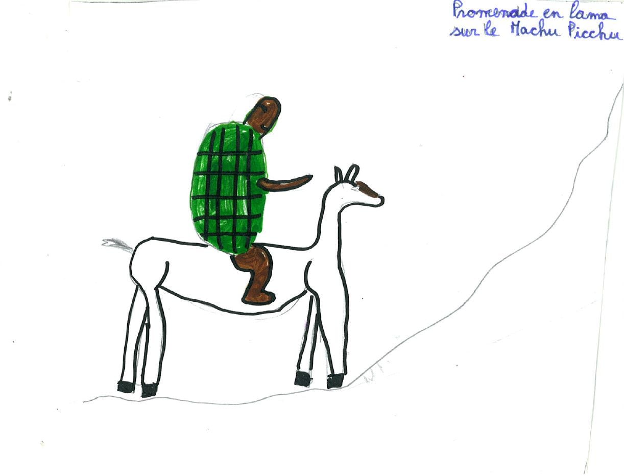 Gulli finit son périple par une promenade à dos de lama sur le Machu Picchu. Tout en haut, il déguste le plat traditionnel : le ceviche.