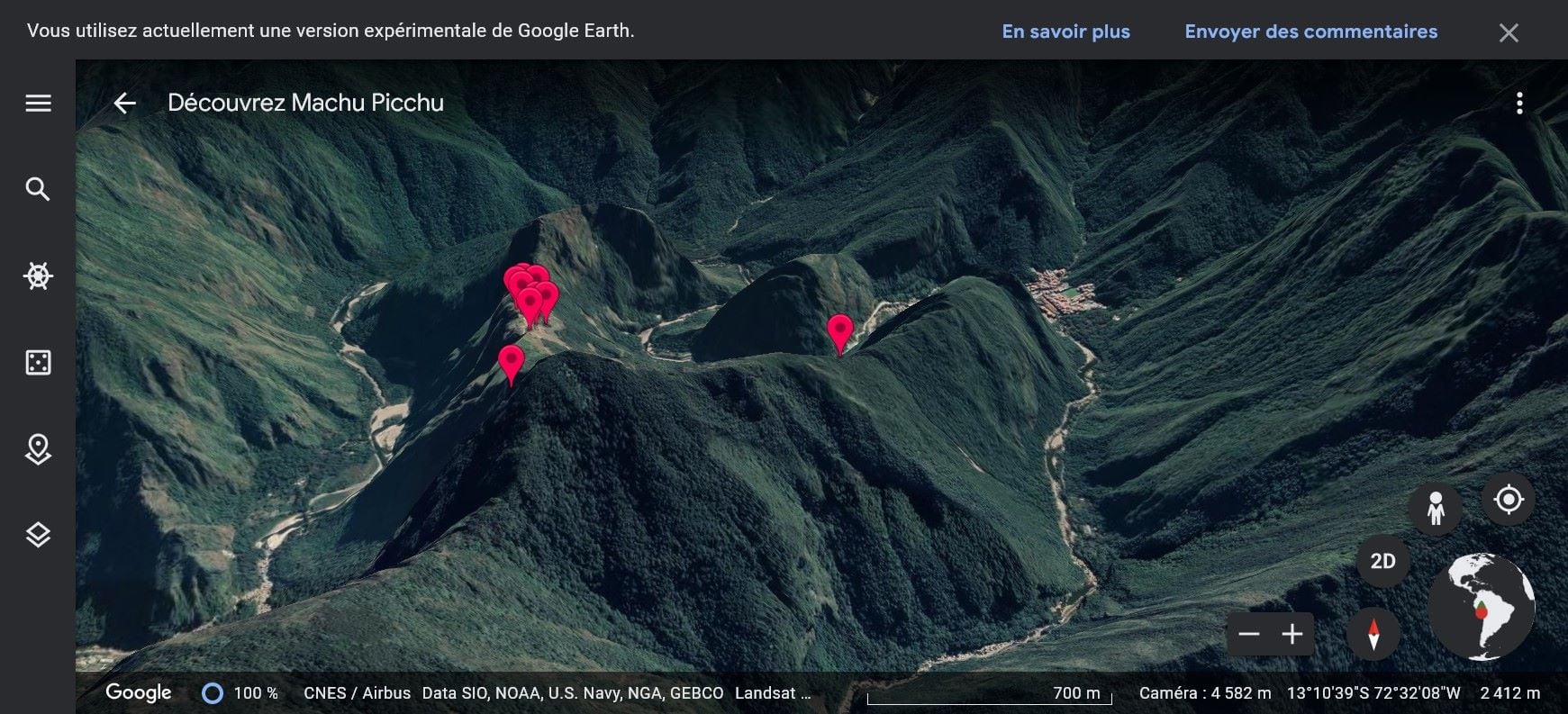 Comme Gulli, découvrez, vous aussi, le Machu Picchu, mais sans quitter votre fauteuil, en vous promenant dans ce site exceptionnel grâce au service 3D de Google earth. Il y a douze espaces différents à explorer.