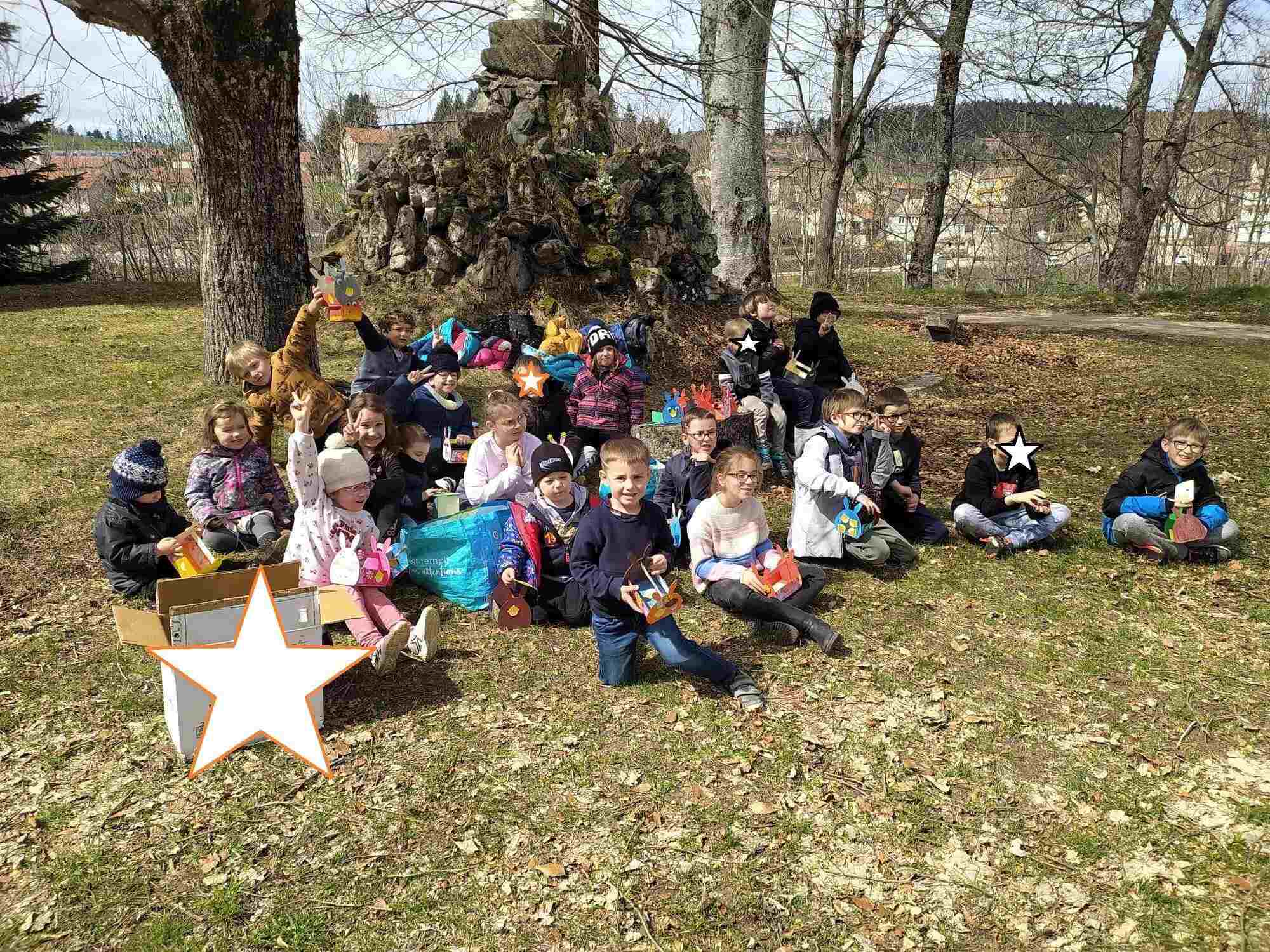 thème de Pâques. De beaux moments de partage avec nos vingt-deux élèves lors du pique-nique au parc des pèlerins. Les enfants ont bricolé leurs paniers, outils indispensables, pour la récolte des œufs disséminés dans le jardin des Pères.
