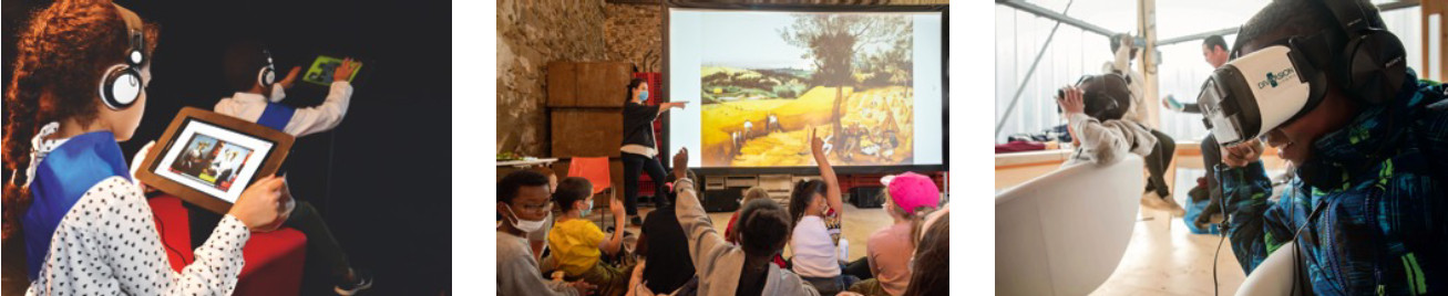 Une Micro-Folie est un lieu de culture, d’échange, de partage de savoirs, conçu pour accueillir tous les publics, composé d’un musée numérique et d’un espace immersif de réalité virtuelle (casques de VR). Les chefs d’œuvre des collections des grands musées nationaux, le Louvre, le Musée d’Orsay ou le Château de Versailles et bien d’autres ont été numérisés en très haute définition et sont présentés sous forme d’animation, par exemple par des séances de médiation pour le public scolaire ou des conférences pour un public large et varié. Le potentiel d’activités culturelles et éducatives est sans limite.