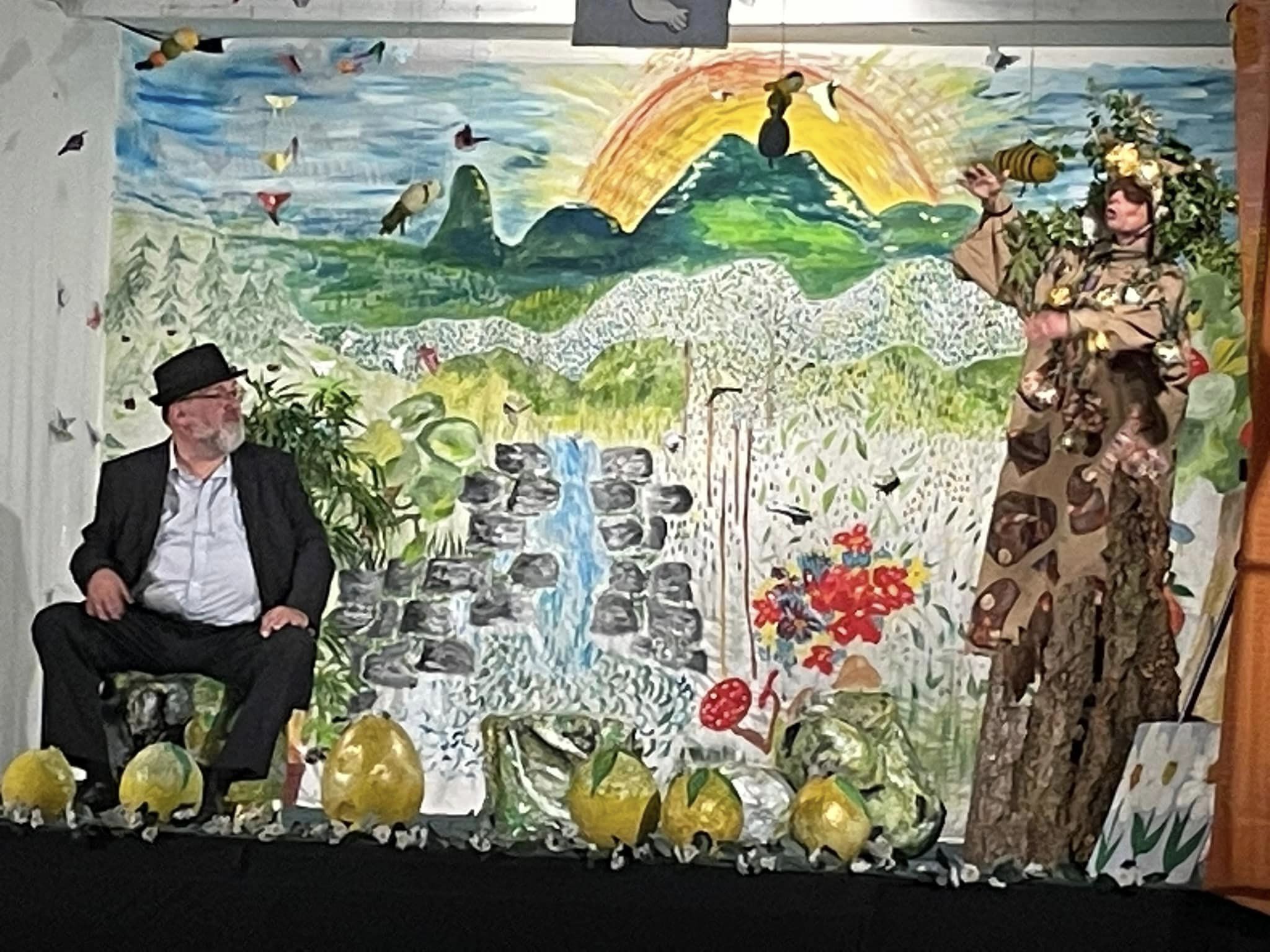 Tout l’hiver nous avons fidèlement répété plusieurs heures par semaine. Cette troupe, loin d’être nouvelle a fêté récemment ses 40 ans, mais la pandémie l’avait mise en sommeil. Pour moi, nouvelle recrue, j’y suis arrivée vraiment par hasard. Dans le plus grand secret Jacques T. m’avait passé le livret de sa pièce. J’étais allée la lire au coucher du soleil au-dessus du cimetière (lieu idéal pour la tranquillité et la méditation). Le rôle du “pommier” m’avait semblé susceptible de me convenir.